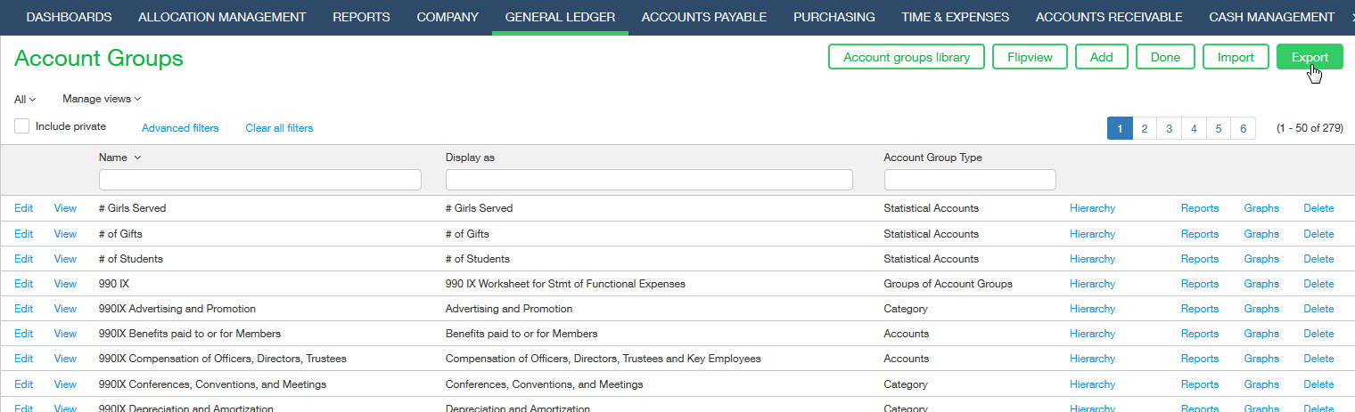 - Export: to Excel, Export your COA to Excel, then create a vlookup in your COA to check that all accounts are included that should be.