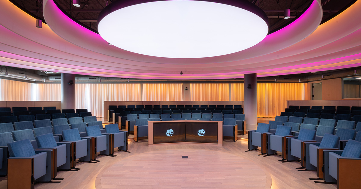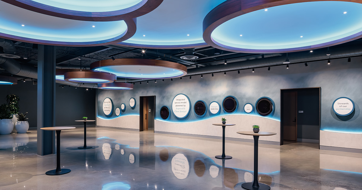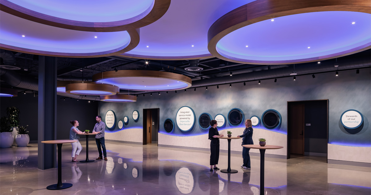 Step into a bold vision for the future of work and collaboration by experiencing inspiring and flexible tech-enabled spaces that support both in-person and hybrid interactions.