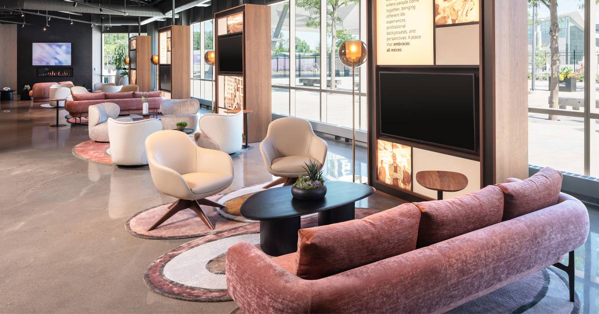 - 37 total 4K TVs throughout the building, ranging from 55” to 98” – ready for presentations, dashboards and digital signage