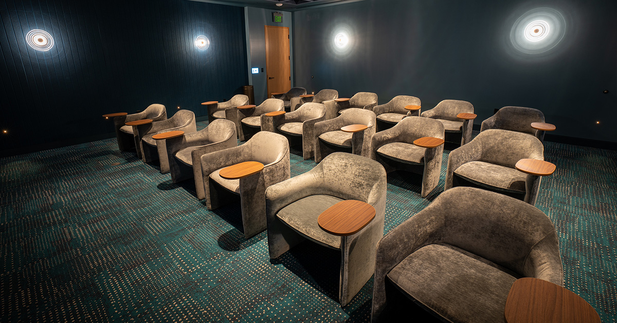 - Lighted ceiling rings inside the Auditorium and in the Auditorium foyer to set at your desired color and brightness