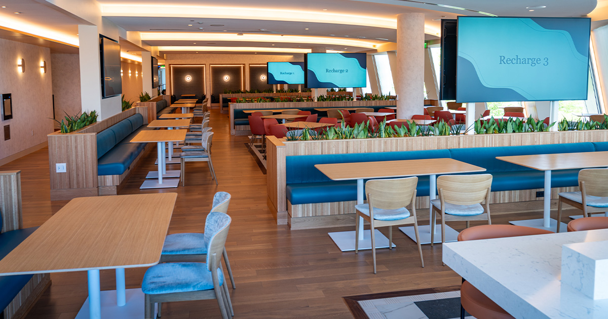 Café— The beautifully designed catering kitchen supports groups of up to 240 for meal service.