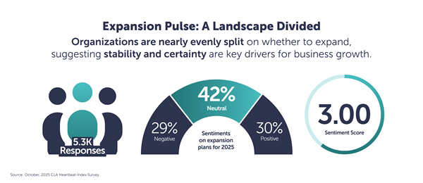 CLA’s Heartbeat Index reveals business sentiment on hiring, expansion, tariffs, and economic outlook across diverse sectors.