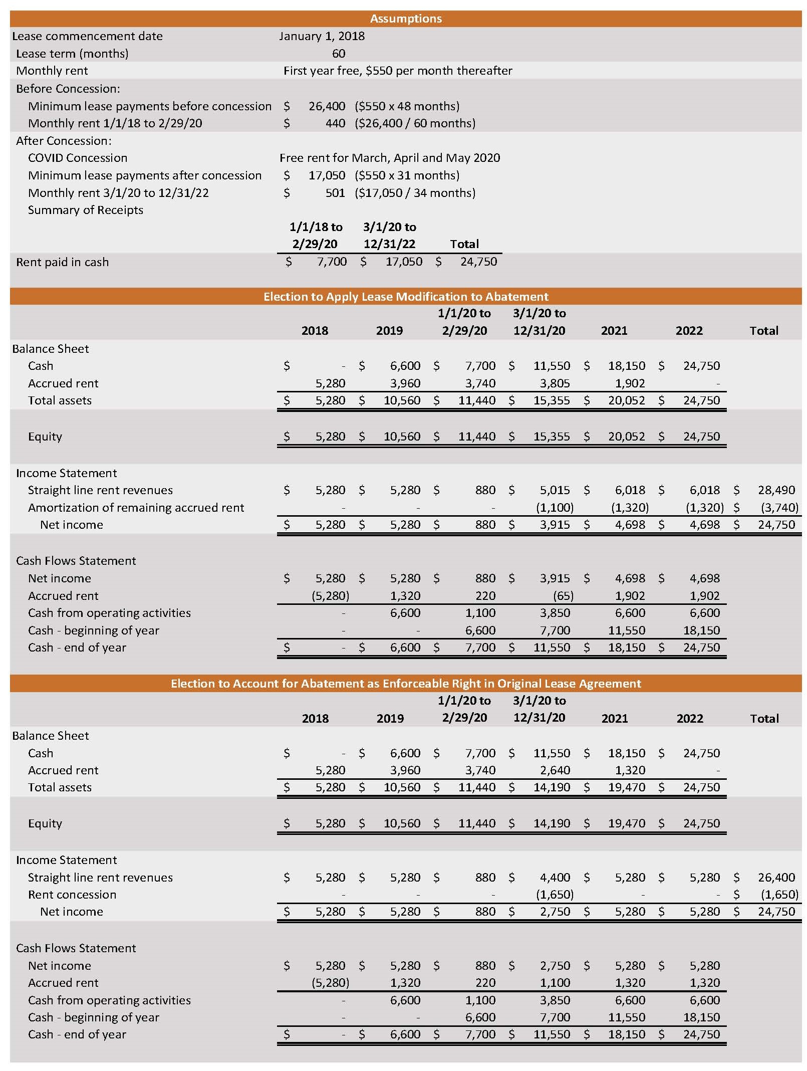 Below are examples of the lessor accounting for both a rent abatement and deferral.