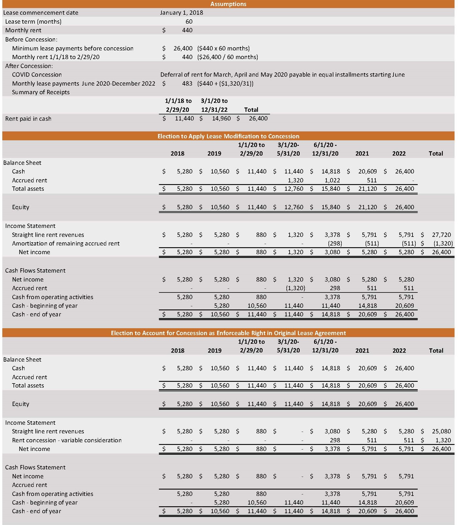In 2020, the world changed due to the COVID-19 pandemic. Governmental and societal restrictions followed, which caused businesses nationwide to close or experience significantly reduced traffic. Unfortunately, the pandemic and resulting business downturn also forced many lessors and lessees to the negotiating table, resulting in lease concessions. Read on to learn how to account for these concessions.