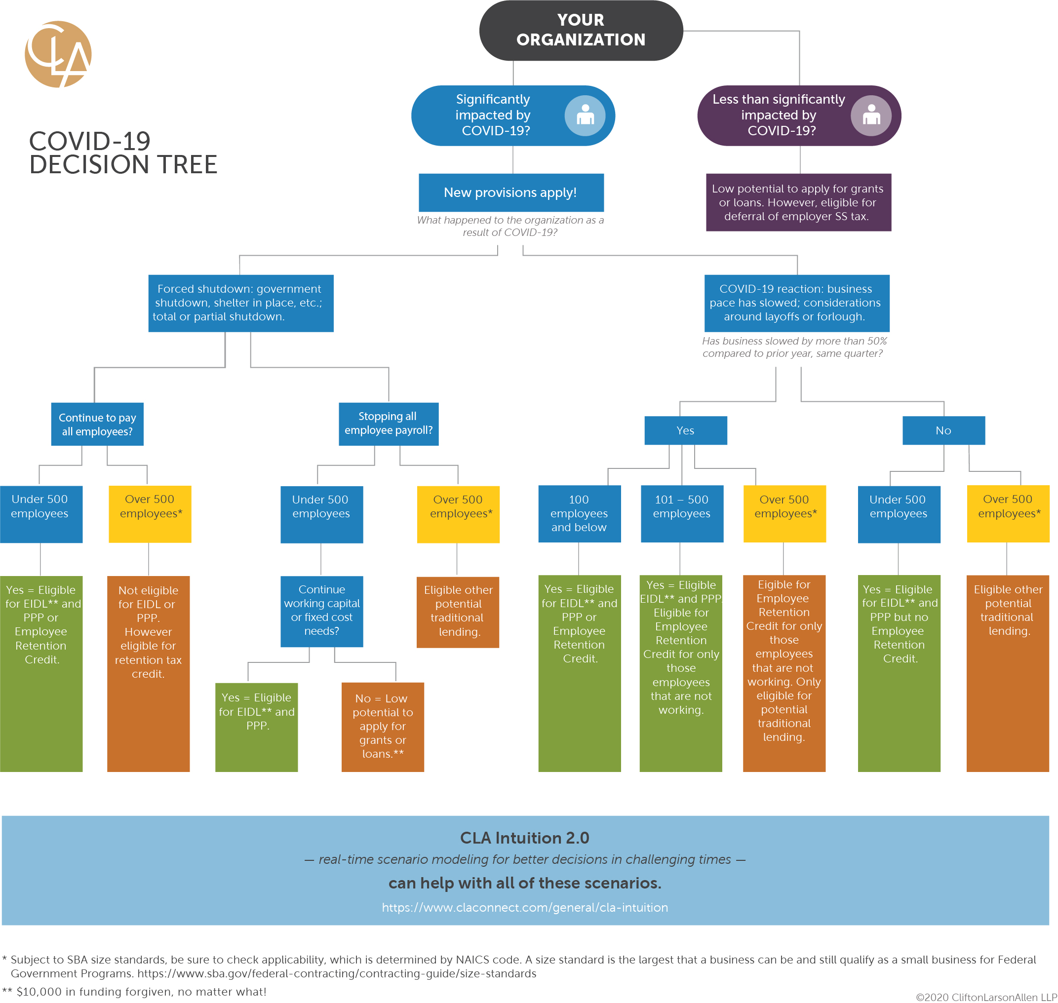 Forced shutdown or significant slowdown? Use our COVID-19 loan and grant decision tree to understand the options best suited for your organization.