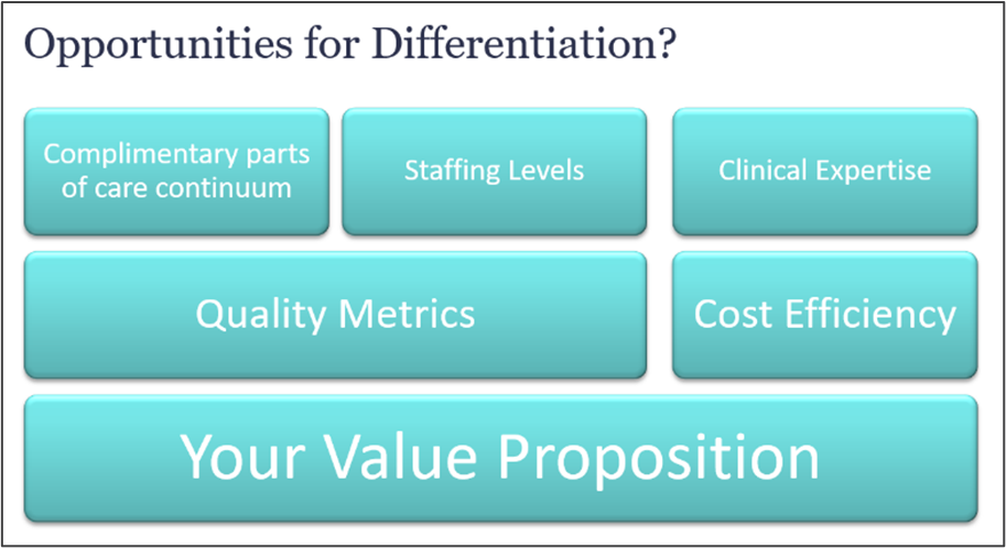 - Your value proposition. To show your value proposition and position your organization for success, it’s vital to understand your own data, quality measures, clinical capabilities, staffing and financial performance.