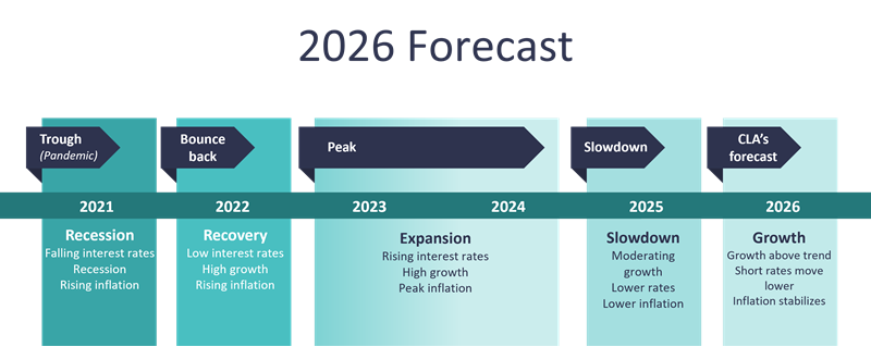 CLA anticipates the U.S. economy could grow at or slightly above its long-term trend of 2% in 2026, assuming the Federal Reserve continues cutting interest rates in a timely manner.