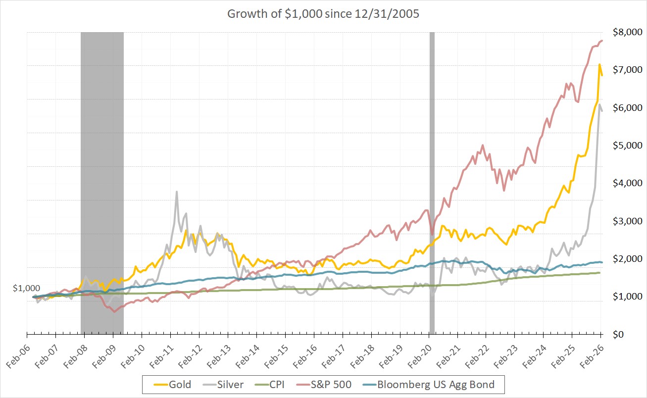 We also believe that select alternatives, in modest amounts, can add meaningful diversification— without the extreme volatility often seen in commodities like gold and silver.