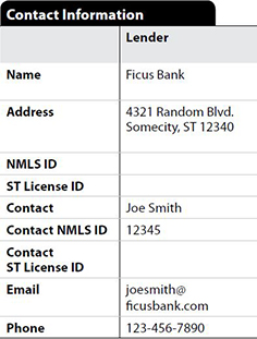 - Formatting the table so that it is inconsistent with the format used for the Calculating Cash to Close table in the Loan Estimate