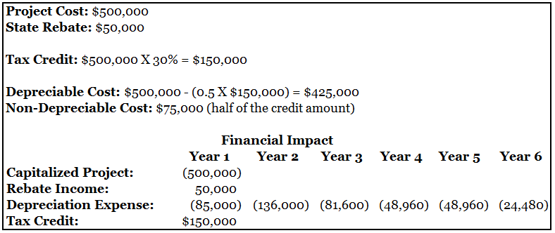 Utility companies or state and local governments may also provide rebates for these projects. In most cases, while the rebates are taxable income, they don’t reduce the cost of the project for purposes of calculating the credit amount.