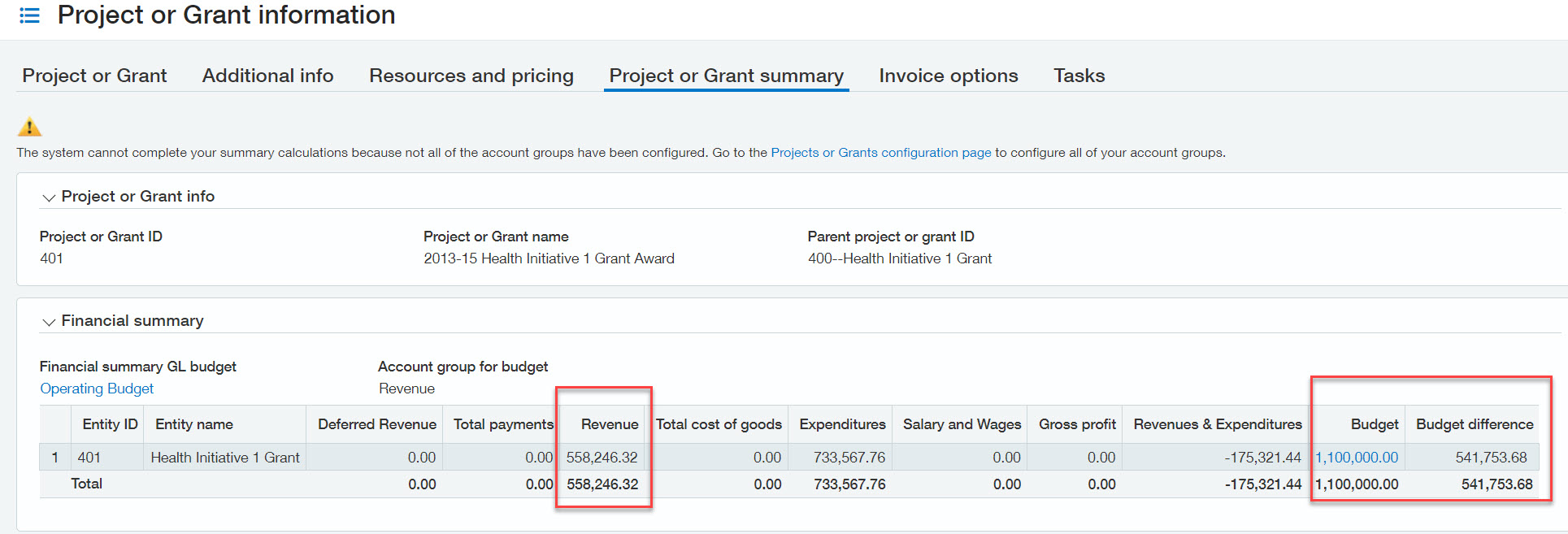 In the screenshot below, our Health Initiatives Grant has: