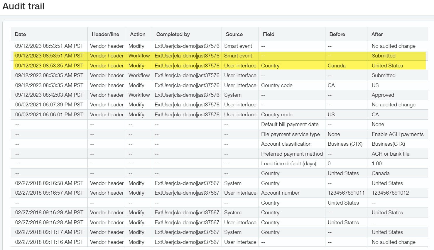 - To see changes made by the submitter, select More actions > View the audit trail.